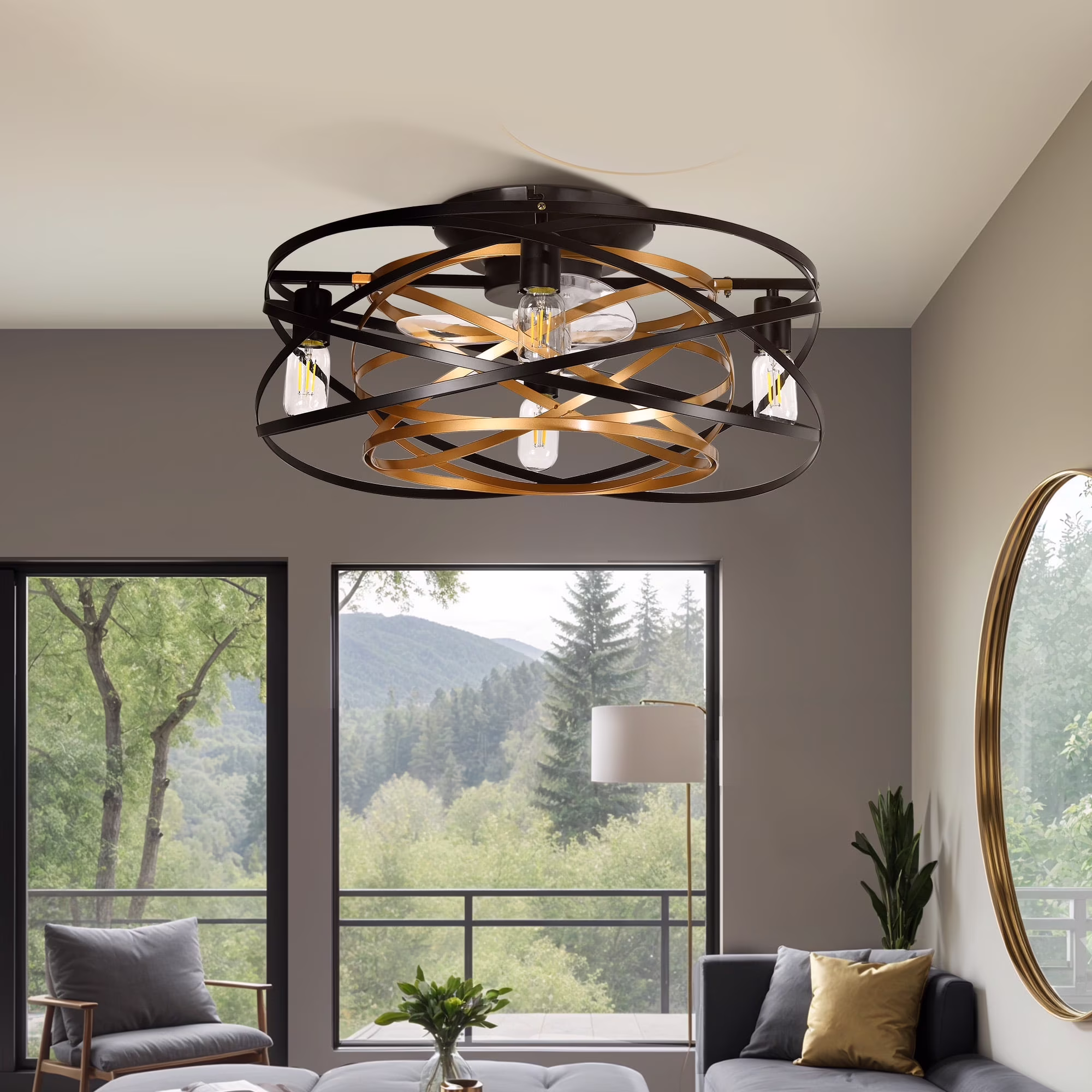 ModFusion 22-Inch Chandelier Crystal Fan Light, Quiet Air Motor, 6-Speed, Cage Design, Black & Gold