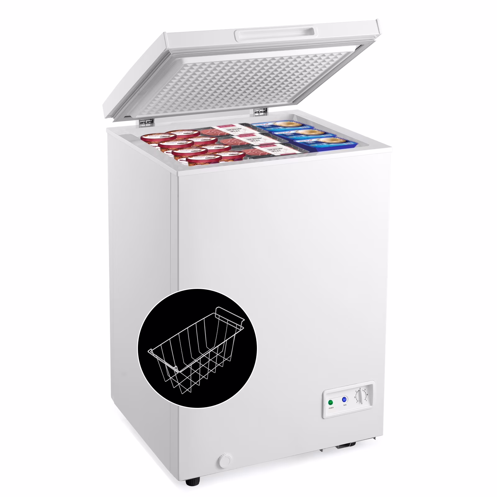 Giantex 3.5 Cu Ft Chest Freezer, Freestanding & Flip Top Chest Freezer w/ 7 Temperature Settings, emovable Sliding Basket Included, Compact Deep Chest Freezer