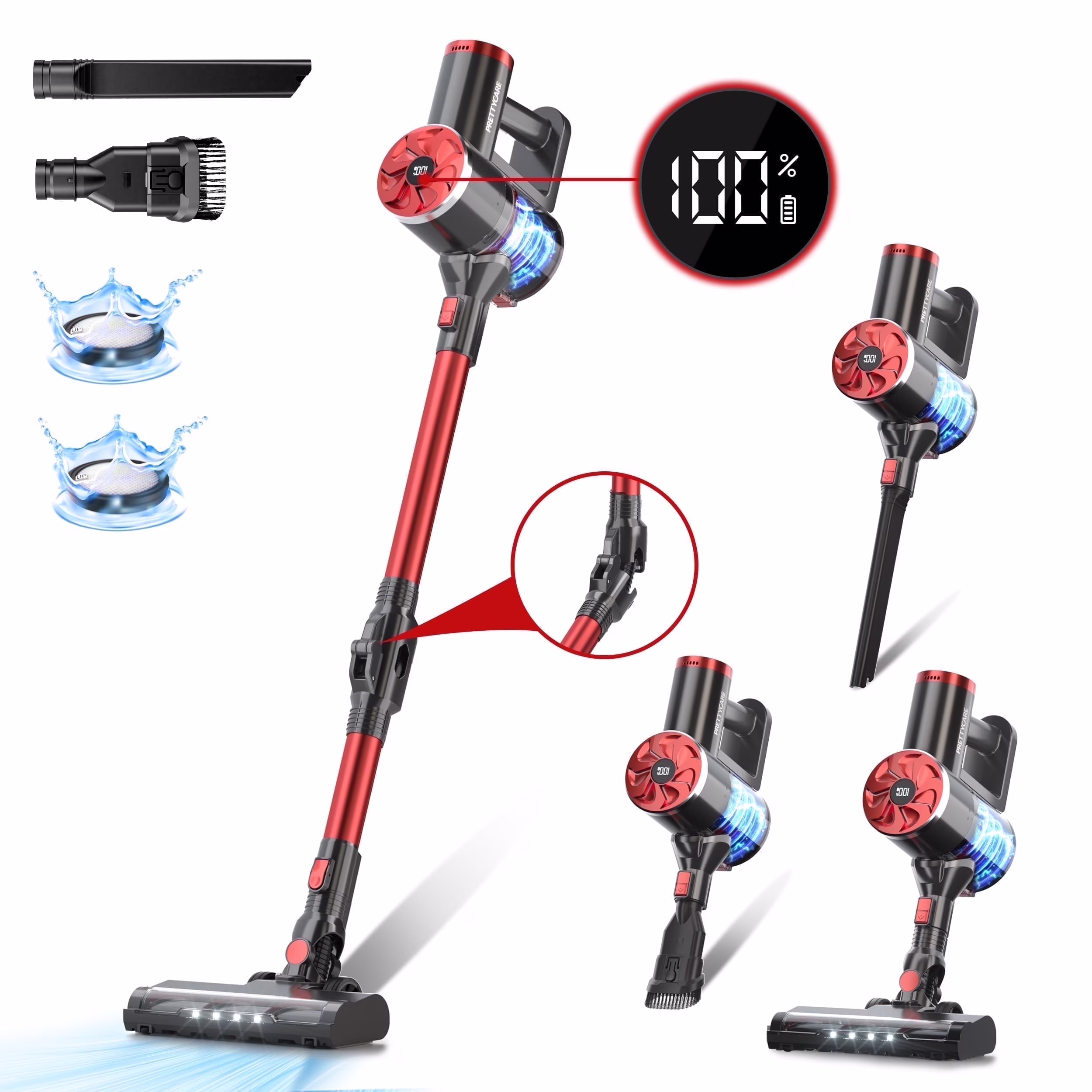 PrettyCare Cordless Stick Vacuum Cleaner Lightweight for Carpet Floor Pet Hair M2