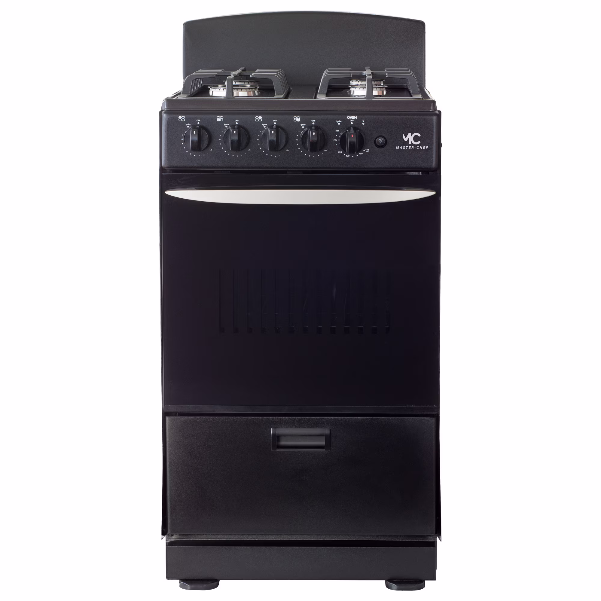 Master-Chef - 20" Black B Gas Space Saver Range with 2.4 CFT Oven Capacity - Italian SABAF Sealed Burners, 1 Ultra-Fast and 3 Fast �C Easy to Clean, Iron Grates, and Cool Knobs CSA Certified