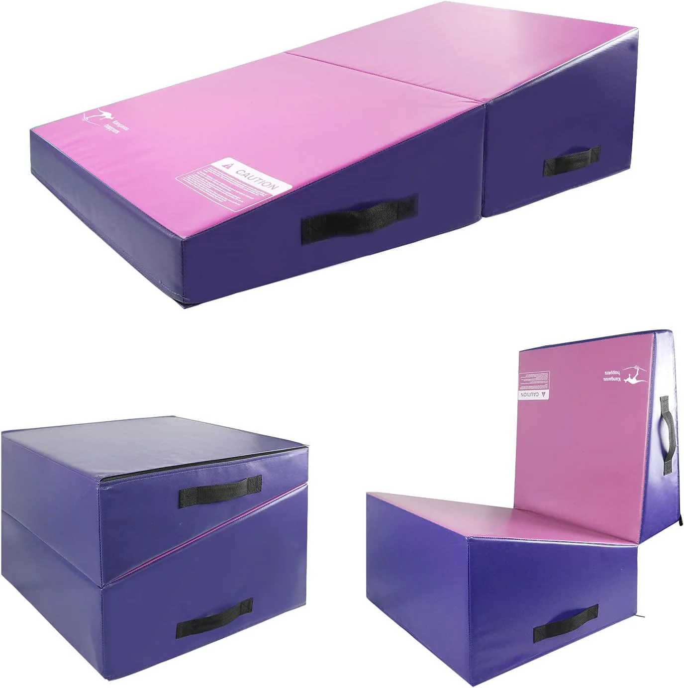 Kangaroo Hoppers 48" x 24" x 14" Gymnastics Cheese Mat, Incline Tumbling Mat for Kids Practise, Skill Training (Pink/Purple)