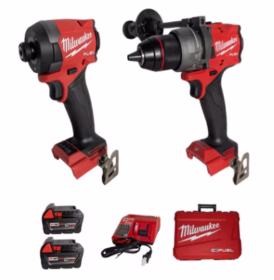 Milwaukee 3697-22 M18 FUEL 18V Brushless Cordless 2-Tool Combo Kit �C Hammer Drill & Impact Driver with (2) 5.0Ah Batteries, Charger & Case