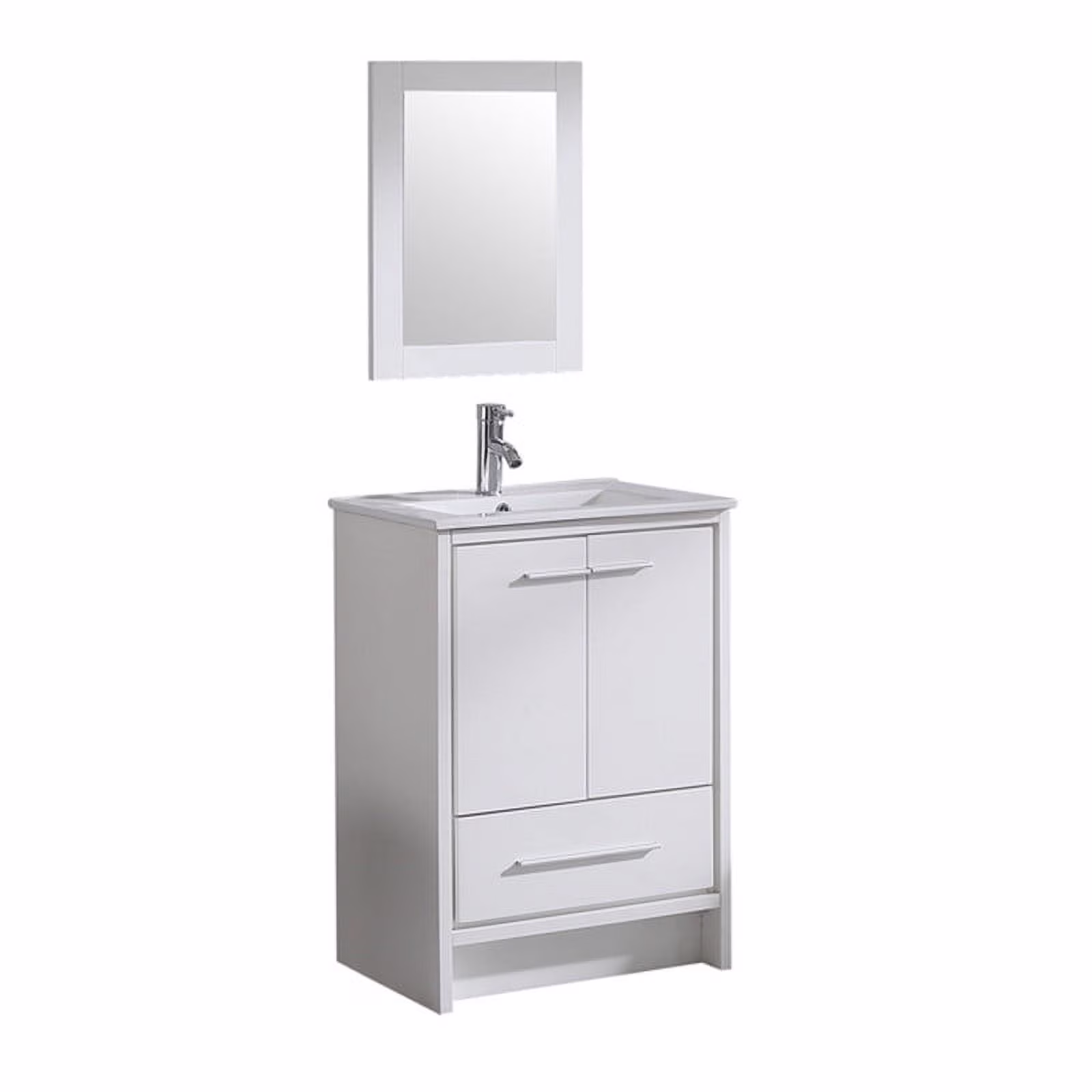 Walsport 24" Luxurious Bathroom Vanity with Ceramic Sink and Countertop and Mirror and Faucet,Double Door Stand Floor Cabinet Bathroom Storage Vanity with Pop Up Drain,White