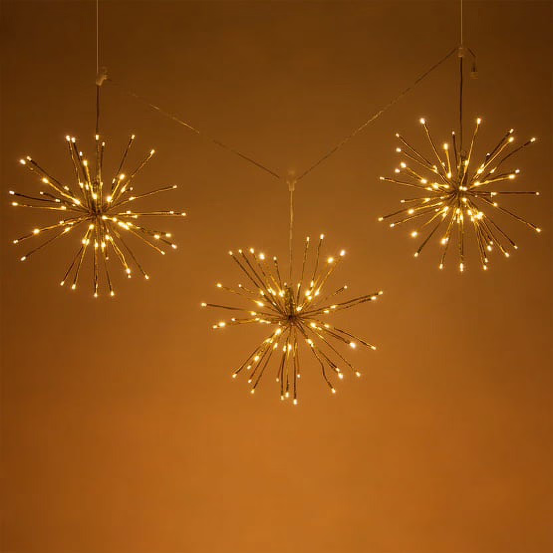 Wintergreen Lighting LED Starburst 5mm Light Balls, Christmas Light Balls, 15in Gold Branches/Warm White Twinkle Lights, Set of 3
