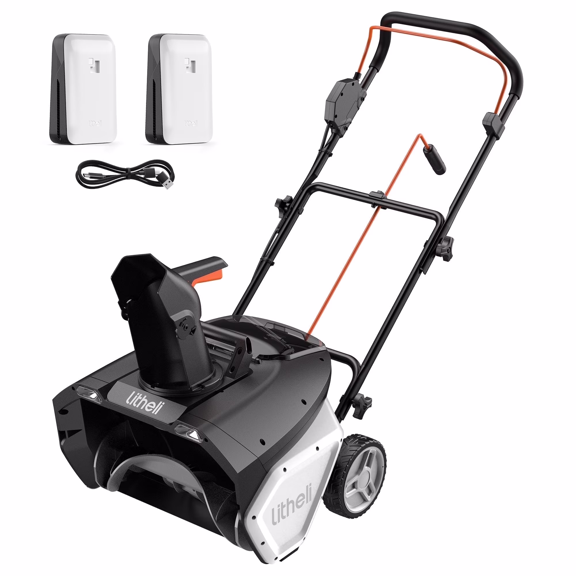 Litheli 2X20V Cordless Snow Blower, 20" Snow Thrower, Electric Snow Blowers with LED Spotlight and Brushless Motor, for Walkways and Driveways, with 2*4.0Ah Battery, Single-Stage