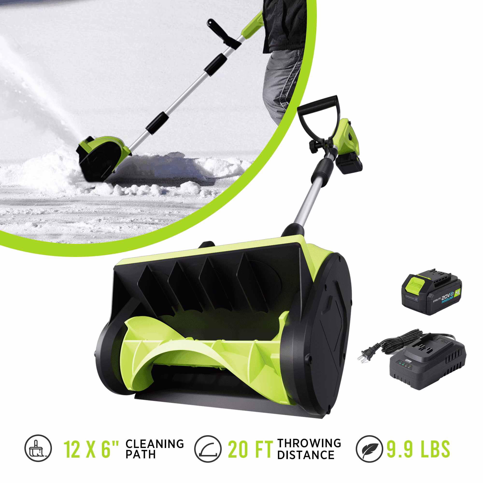 Steelite 21V 12 Inch Cordless Snow Shovel, Battery Powered Snow Blower with Directional Plate & Adjustable Front Handle,4.0-Ah Battery & Quick Charger Included