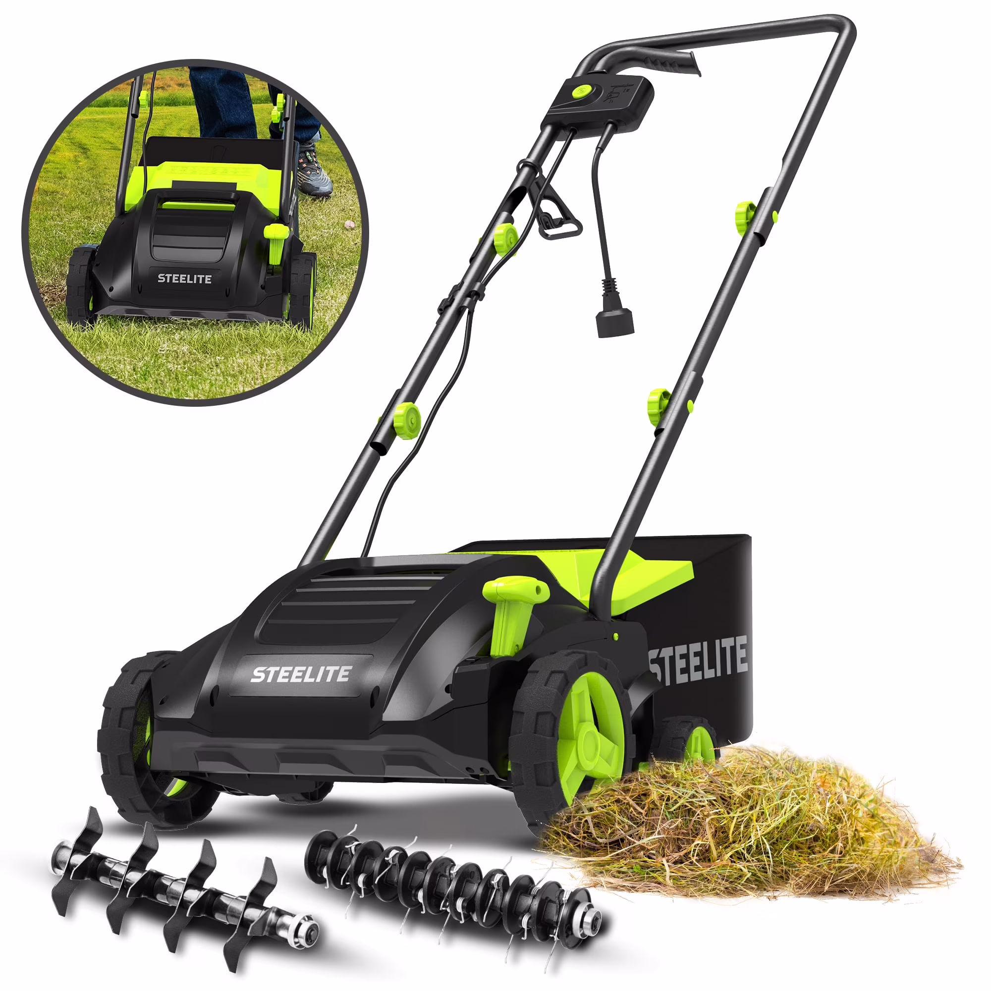 Steelite 2-in-1 Electric Dethatcher and Scarifier,13-Inch 12-Amp Corded Electric Dethatcher with Removable 8-Gallon Collection Bag,for Grass Garden Yard