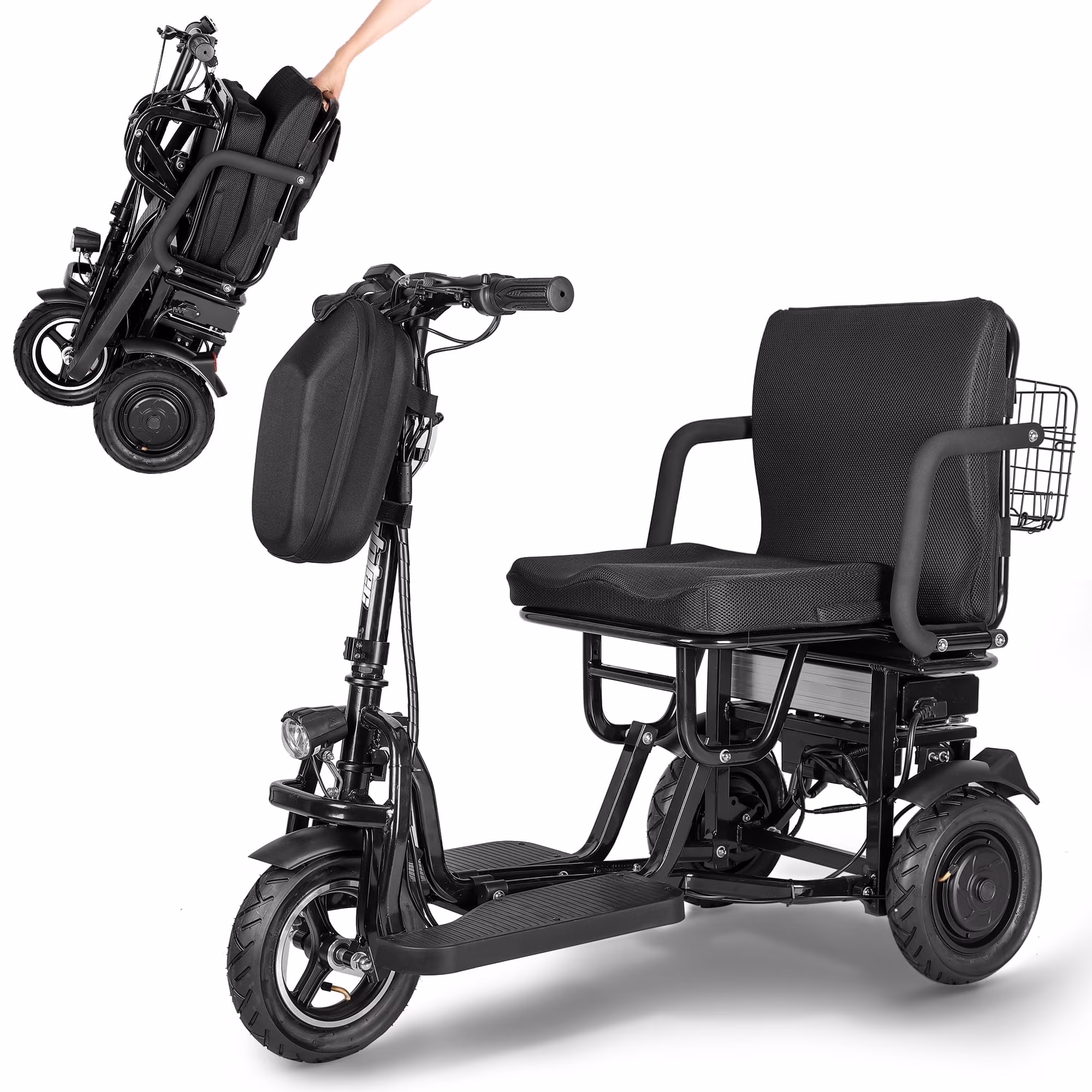 BAMACAR 3-Wheel Folding Mobility Scooter Lightweight for Seniors & Adults 300 lbs, Portable Powered Handicap All Terrain Travel Scooter, Mobility Scooters Foldable Collapsible Electric Scooters Black