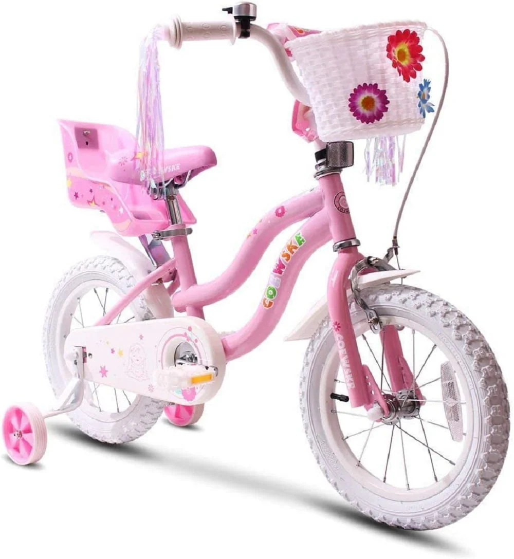 Coewske Princess Kids Bike 14 inch Boys Girls Bicycle with Training Wheels, Pink