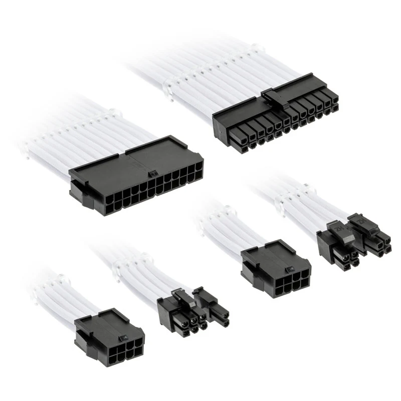 Kolink Core Standard Braided Cable Extension Kit - Brilliant White - 2x 6+2pin. 1x 4+4pin. 1x 20-4pin