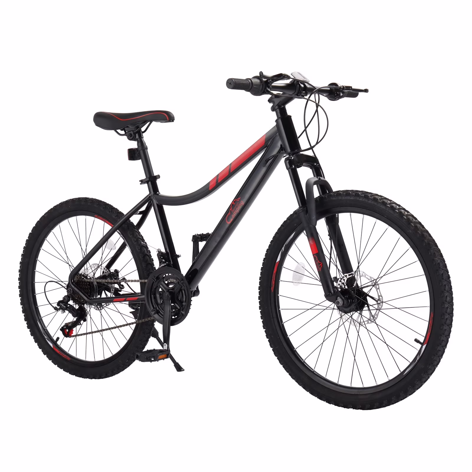 Ktaxon 24" Mountain Bike with Shimano 21 Speed, Disc Brakes, Black Red