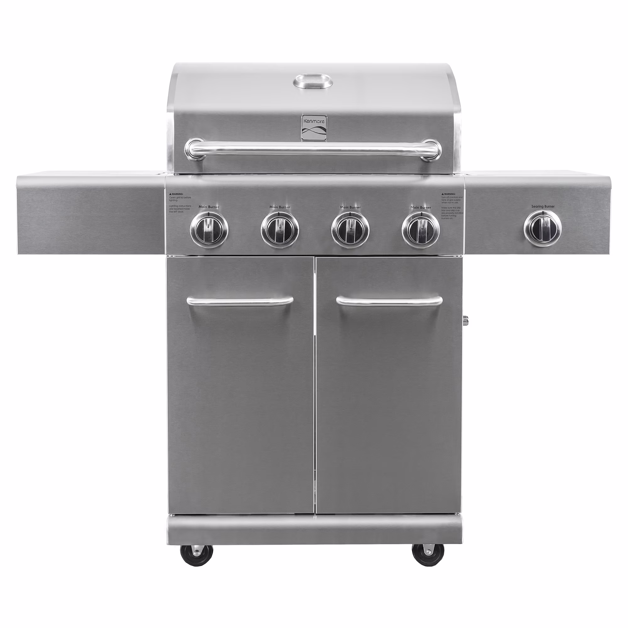 Kenmore PG-40405S0L-SE 4 Burner Outdoor Patio Propane Gas BBQ Grill with Searing Side Burner, Stainless Steel