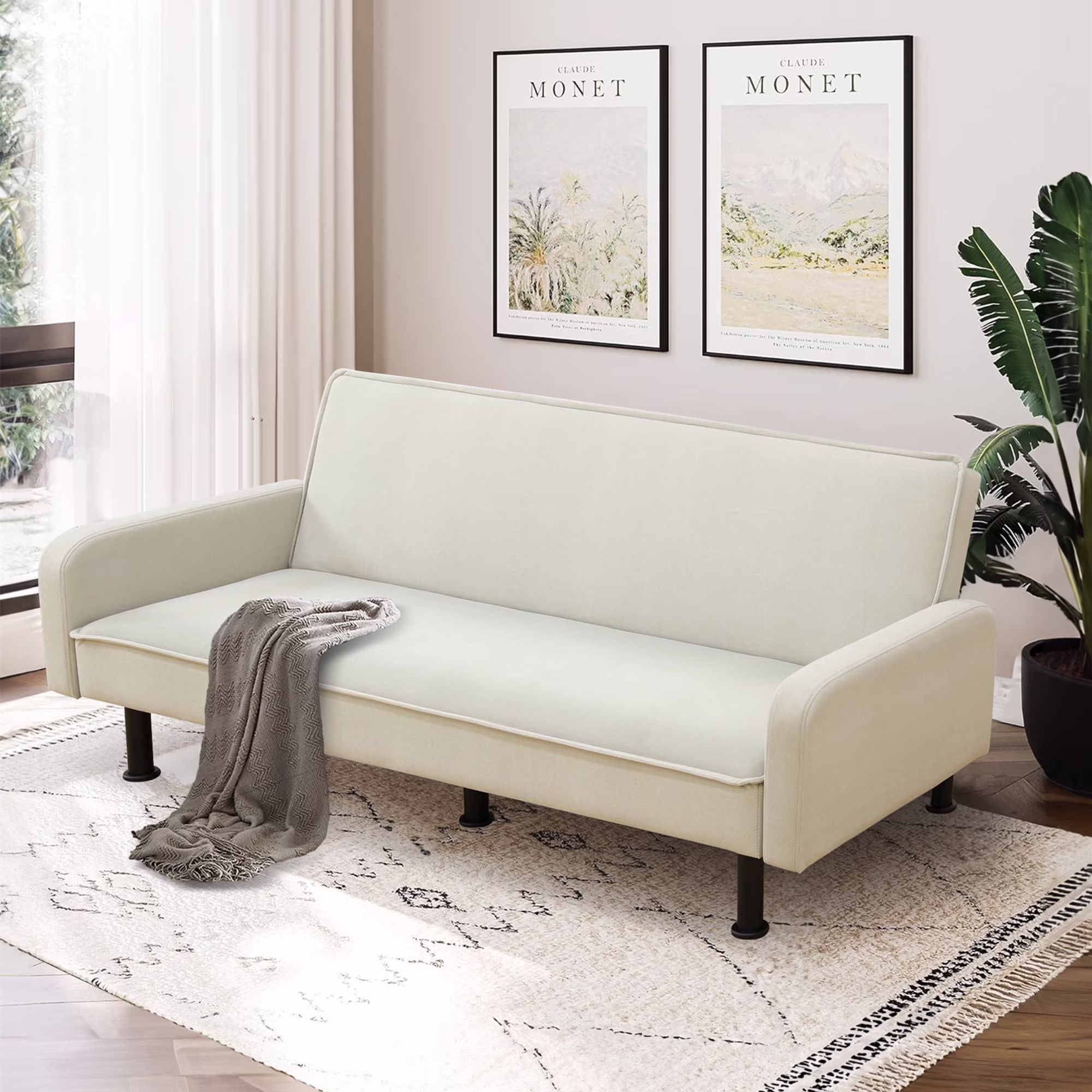 Dextrus 3-in-1 Convertible Futon Sofa Bed, Modern Sleeper Sofa with Pull-Out Bed for Small Place, Beige