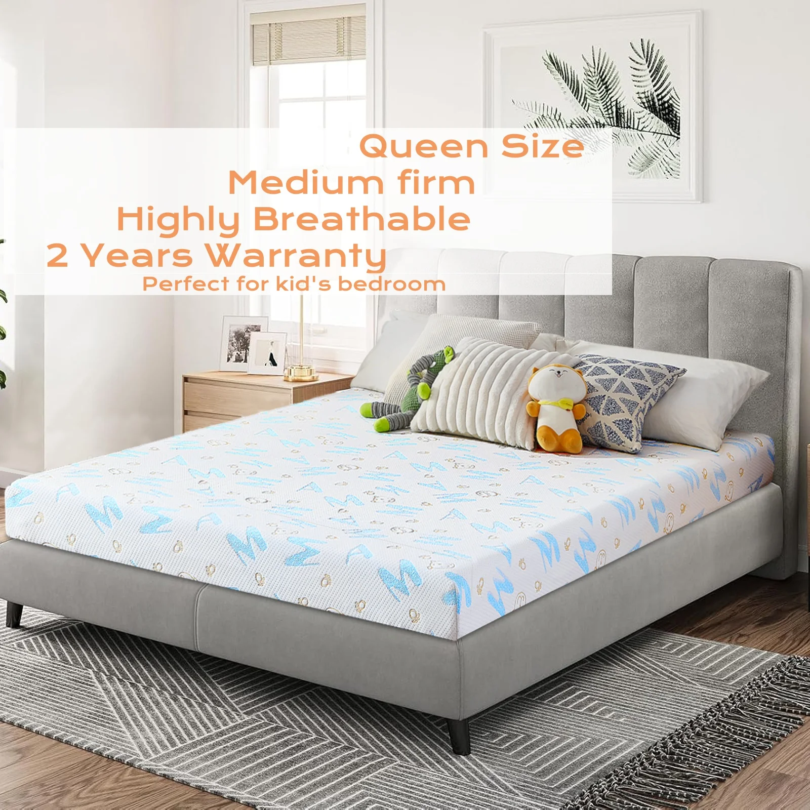 Gel Memory Foam Mattress, Twin, 6 Inch Alphabet Bed Mattress, Medium Firm Feel Mattress,Breathable & Cool Sleep Spine Pressure Relief Bed in a Box CertiPUR-US Certified
