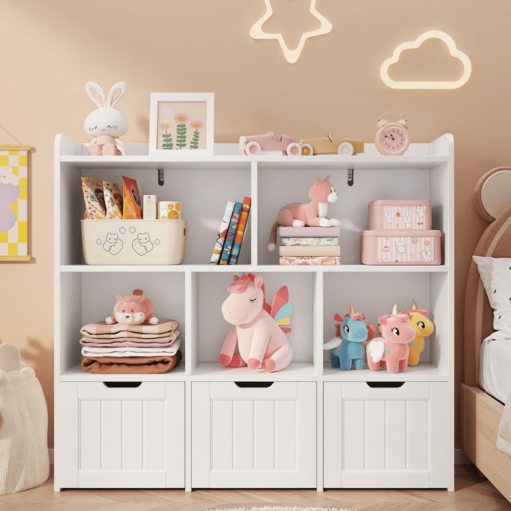 Toy Storage Organizer, Lofka Kids Bookcase with 3 Drawers & 6 Shelves for Nursery, Kids' Bedroom, White