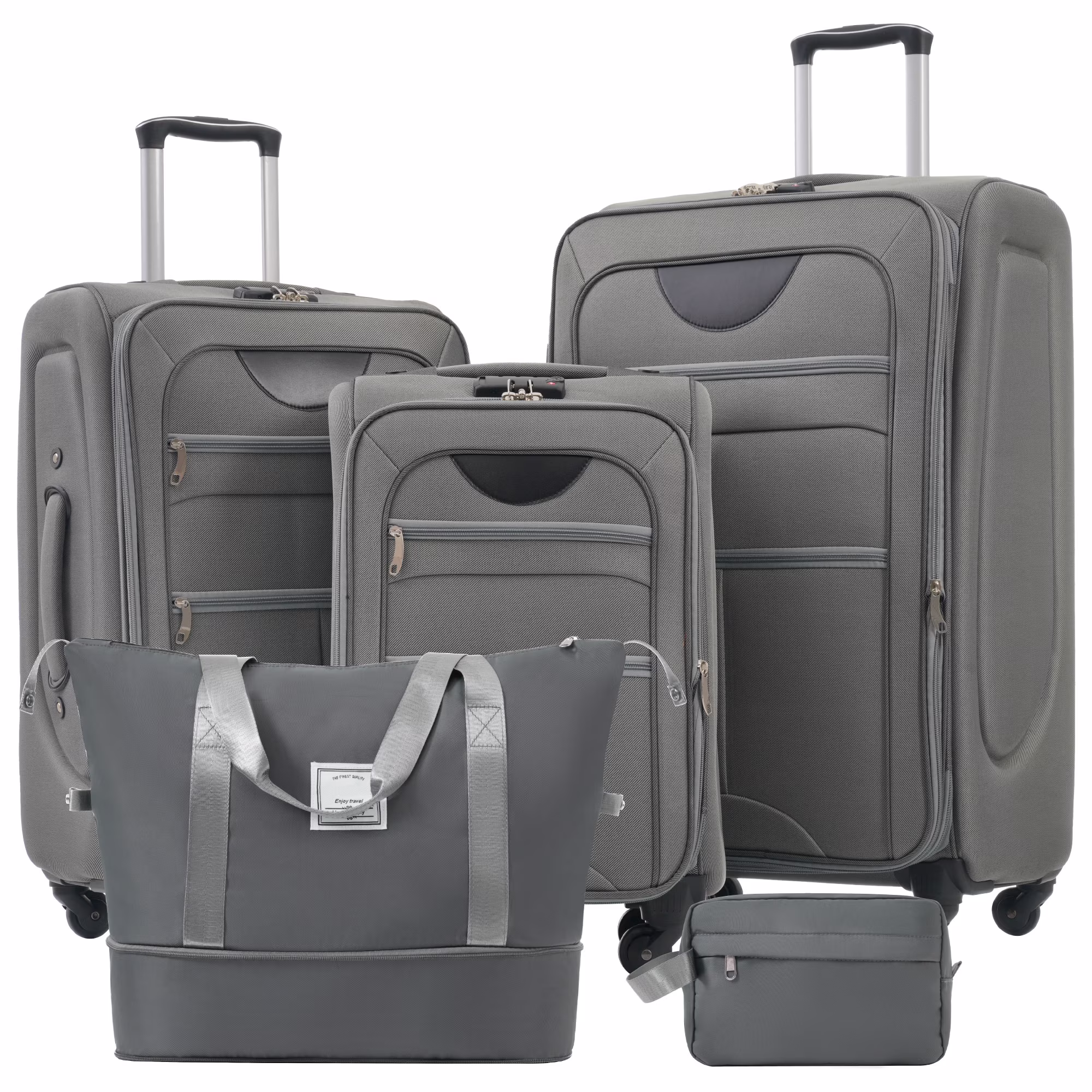 PAPROOS 3 PCS Luggage Set with Duffel Bag, Lightweight Carry on Softside Suitcases Set, 20in 24in 28in Expandable Suitcase with Spinner Wheel and TSA Lock, Softshell Luggage Travel Set, Gray