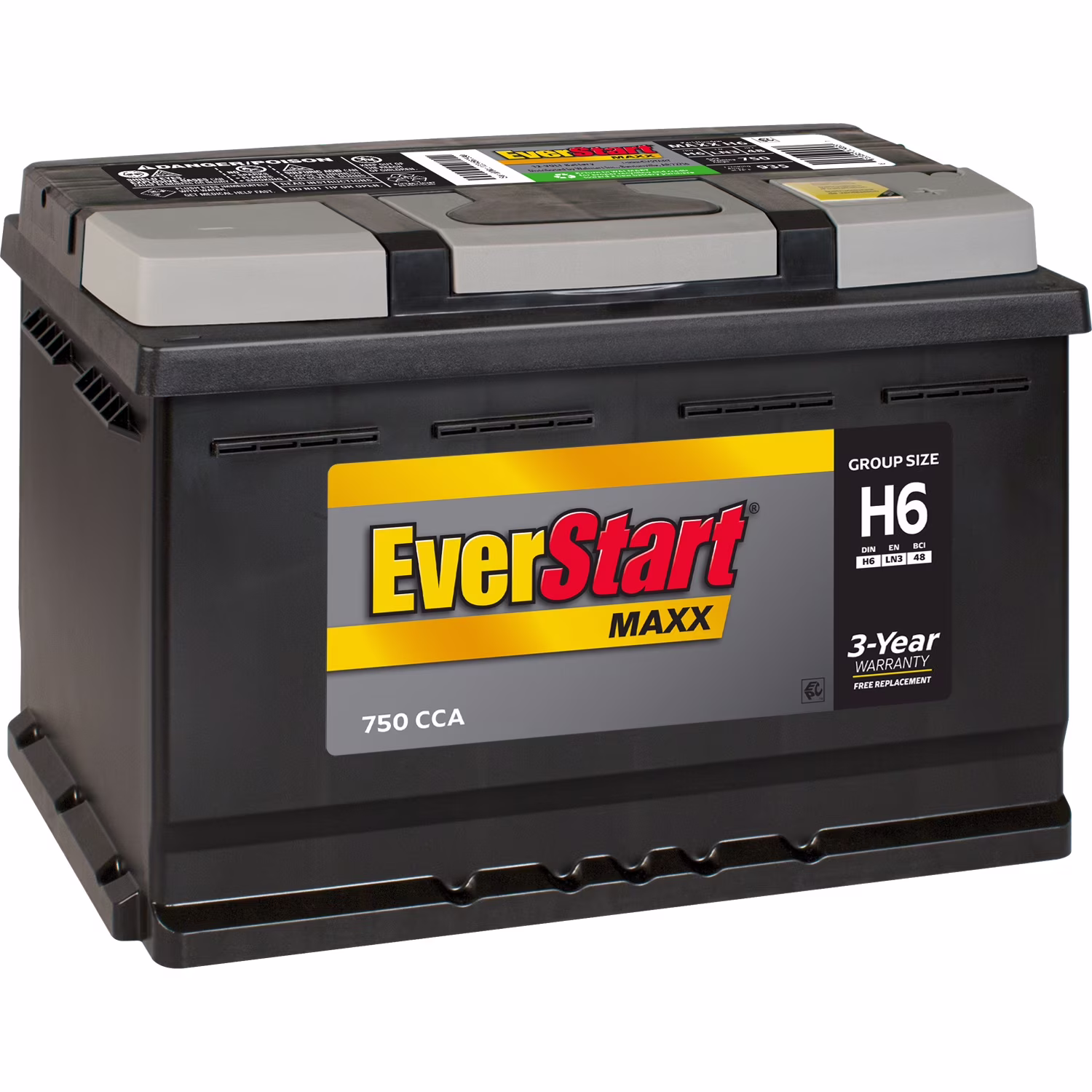 EverStart Maxx Lead Acid Automotive Battery, Group Size H6 / LN3 / 48 12 Volt, 750 CCA 120 RC