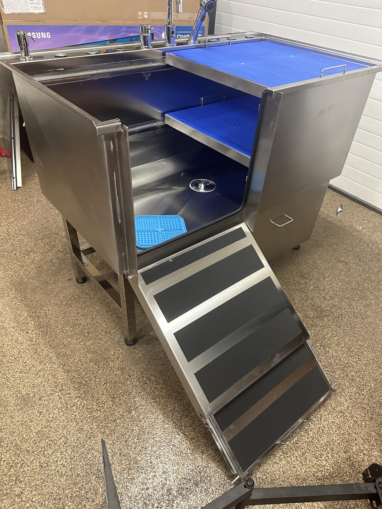 I purchased this dog bathing tub to bathe my 4 Basset Hounds! It is awesome. The quality is superb and the pull out ramp is perfect for my hounds! The customer service I experienced with the company I purchased this from was excellent! I highly recommend this product and company.