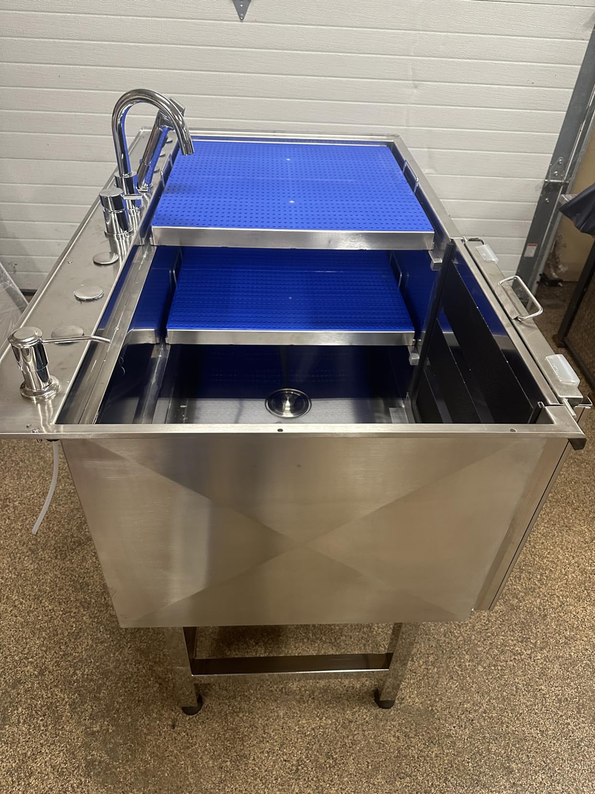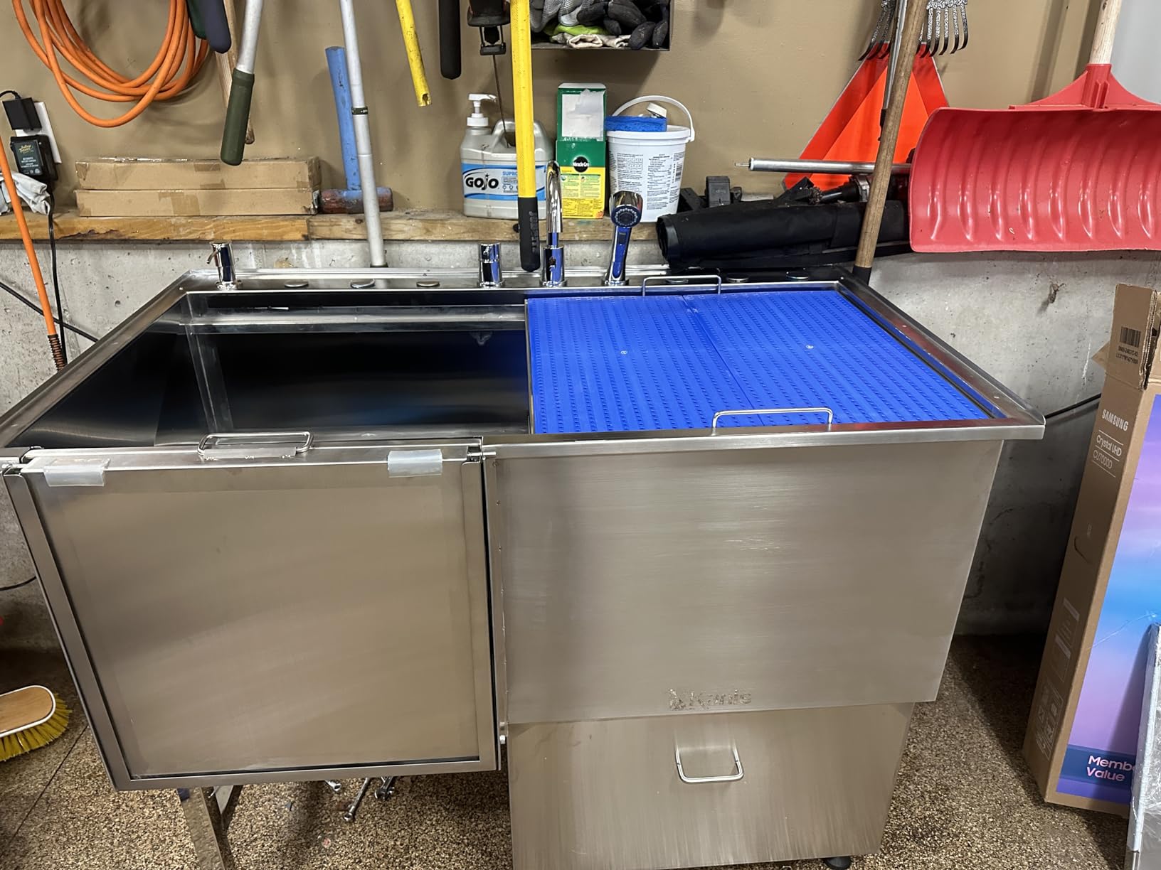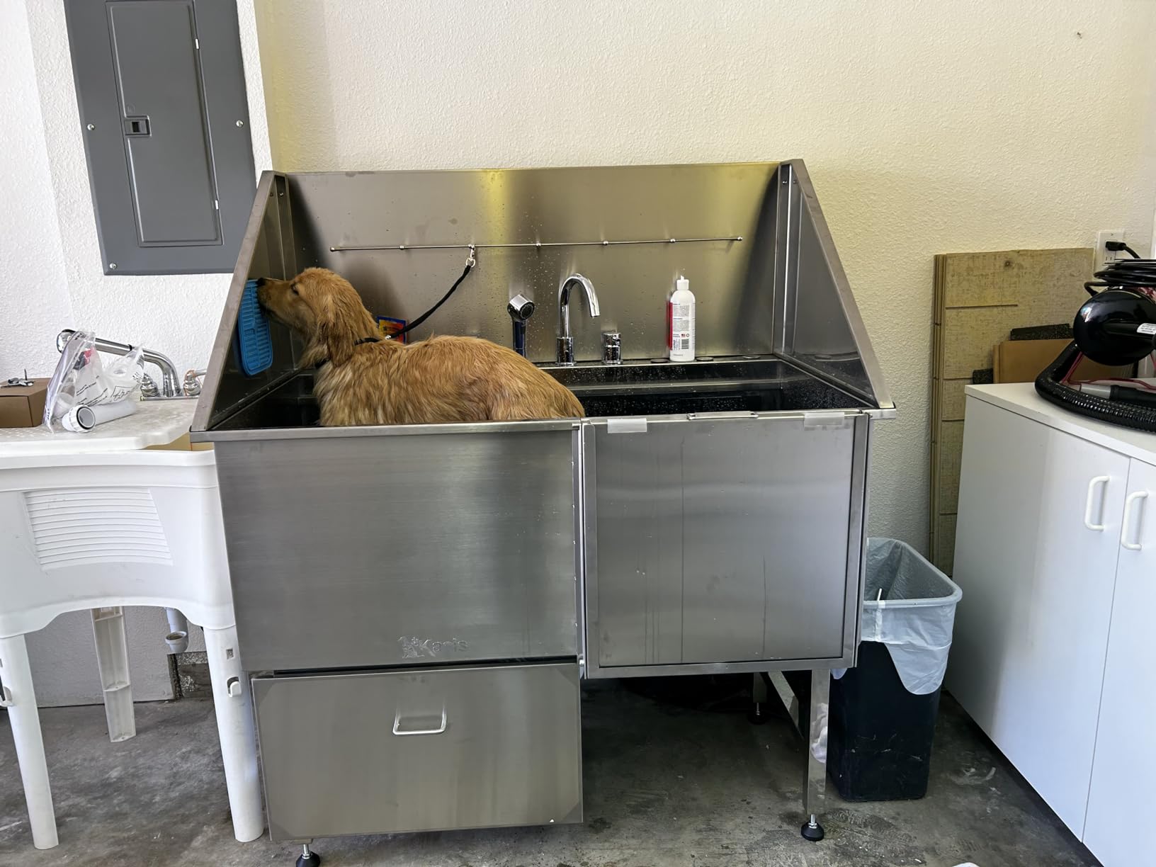 - 50" UTILITY & GROOMING STATION - KANIS Proudly introduces The most Complete and Versatile dog bathtub! Suitable for general home cleaning and pet washing, our grooming sink is a must-have in a multi-functional utility room, laundry, or garage. Superior Quality, Durable & Rust-resistant 304 Stainless Steel, No Leak Fully Welded Construction and Easy to install.